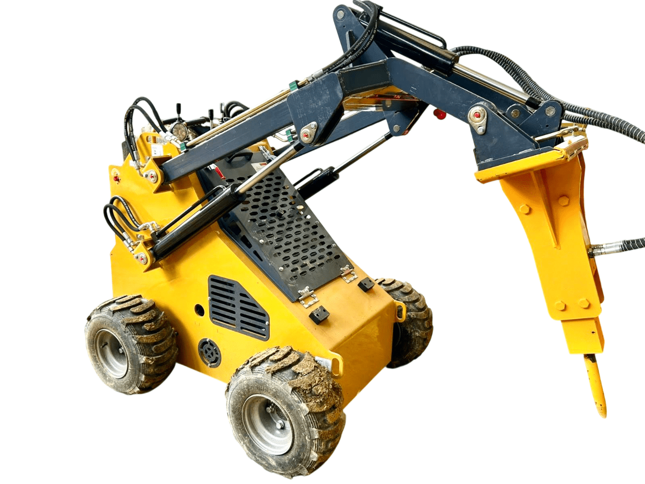 Minicargador frontal con neumáticos y martillo hidráulico BMS380
